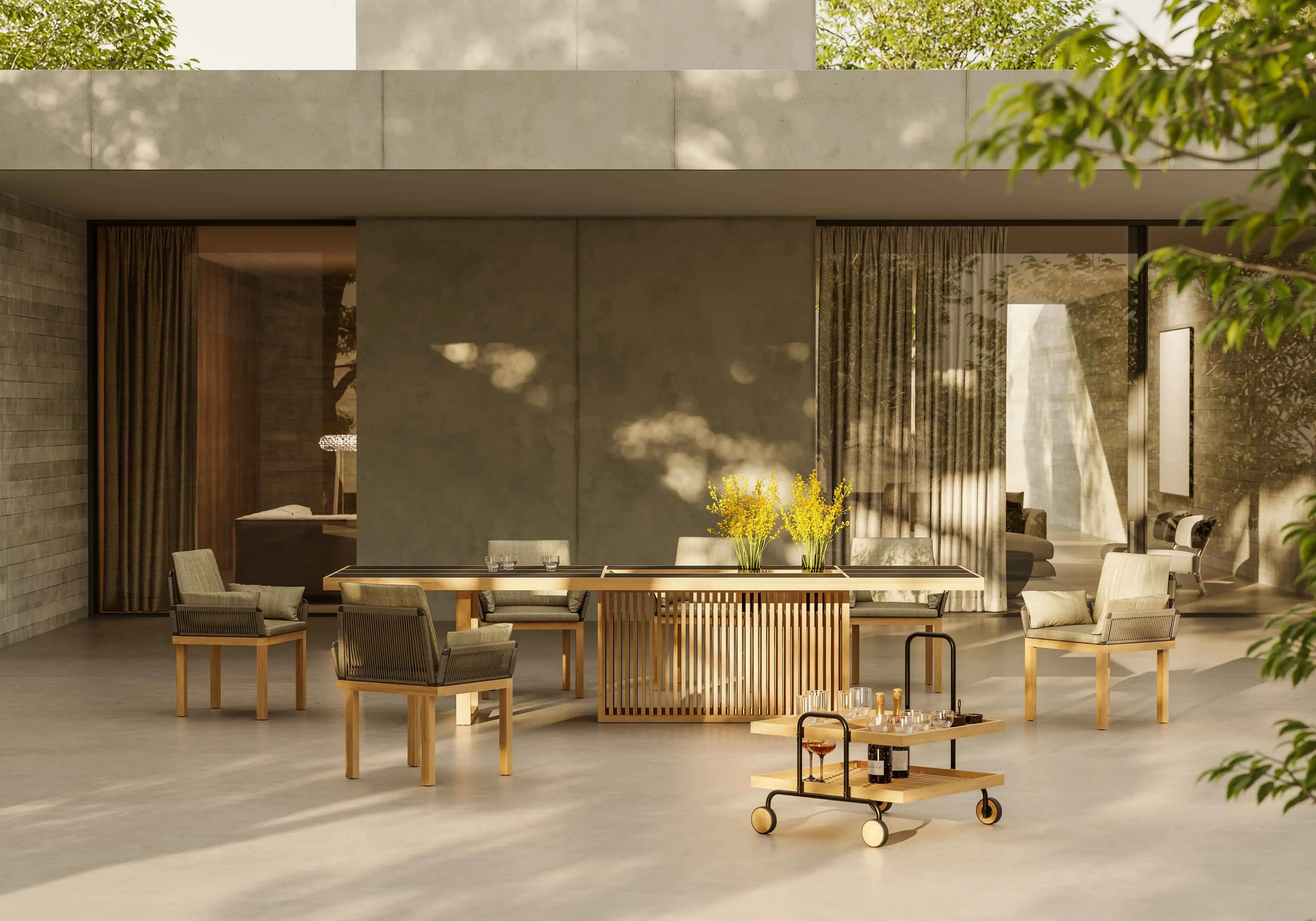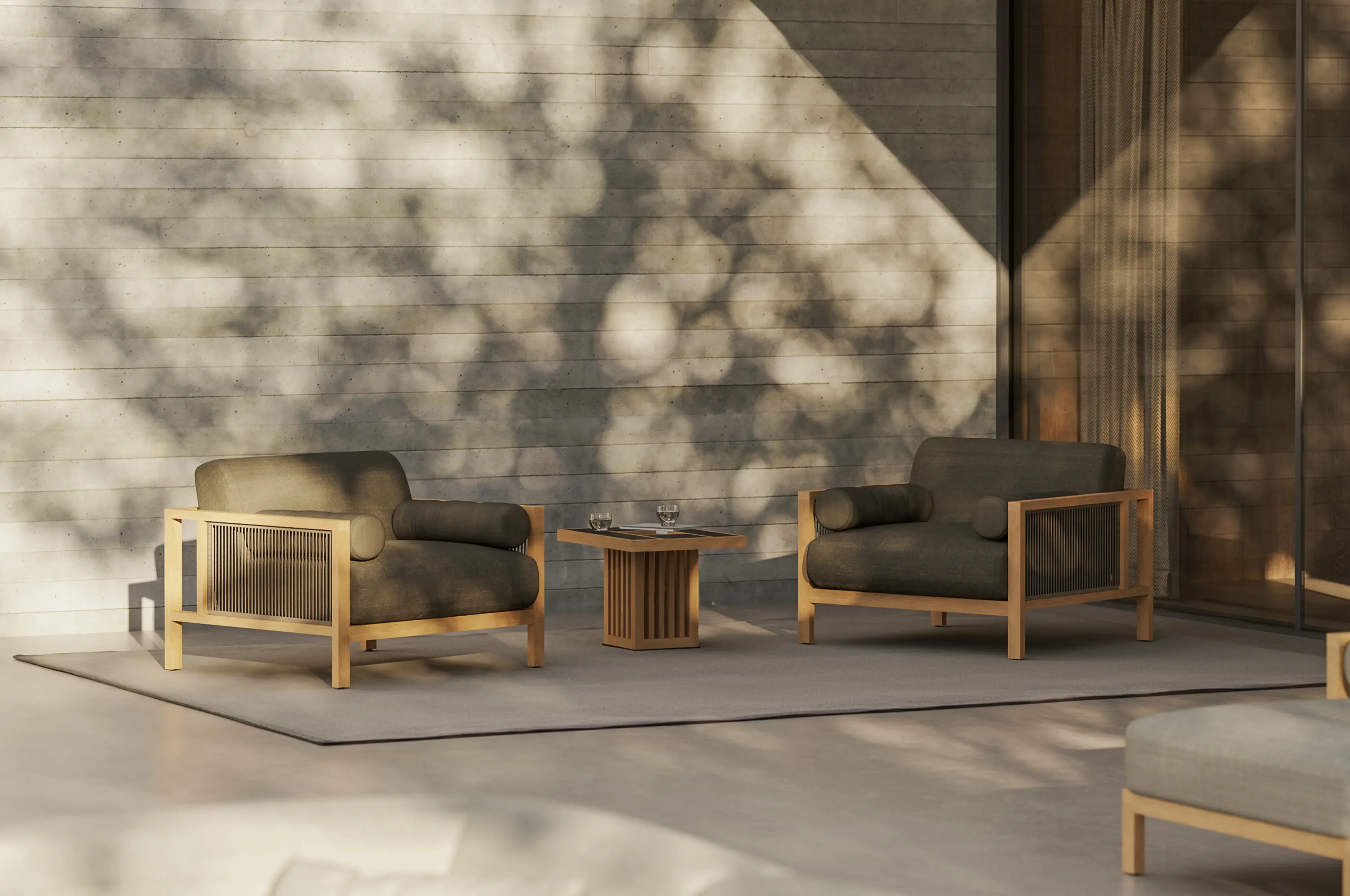 Designed to provide comfort and a momentary escape from the hustle of daily life, this collection creates a serene space to unwind. Each piece is crafted from Otazen’s signature teak, ensuring not only durability but also a deep connection with nature.