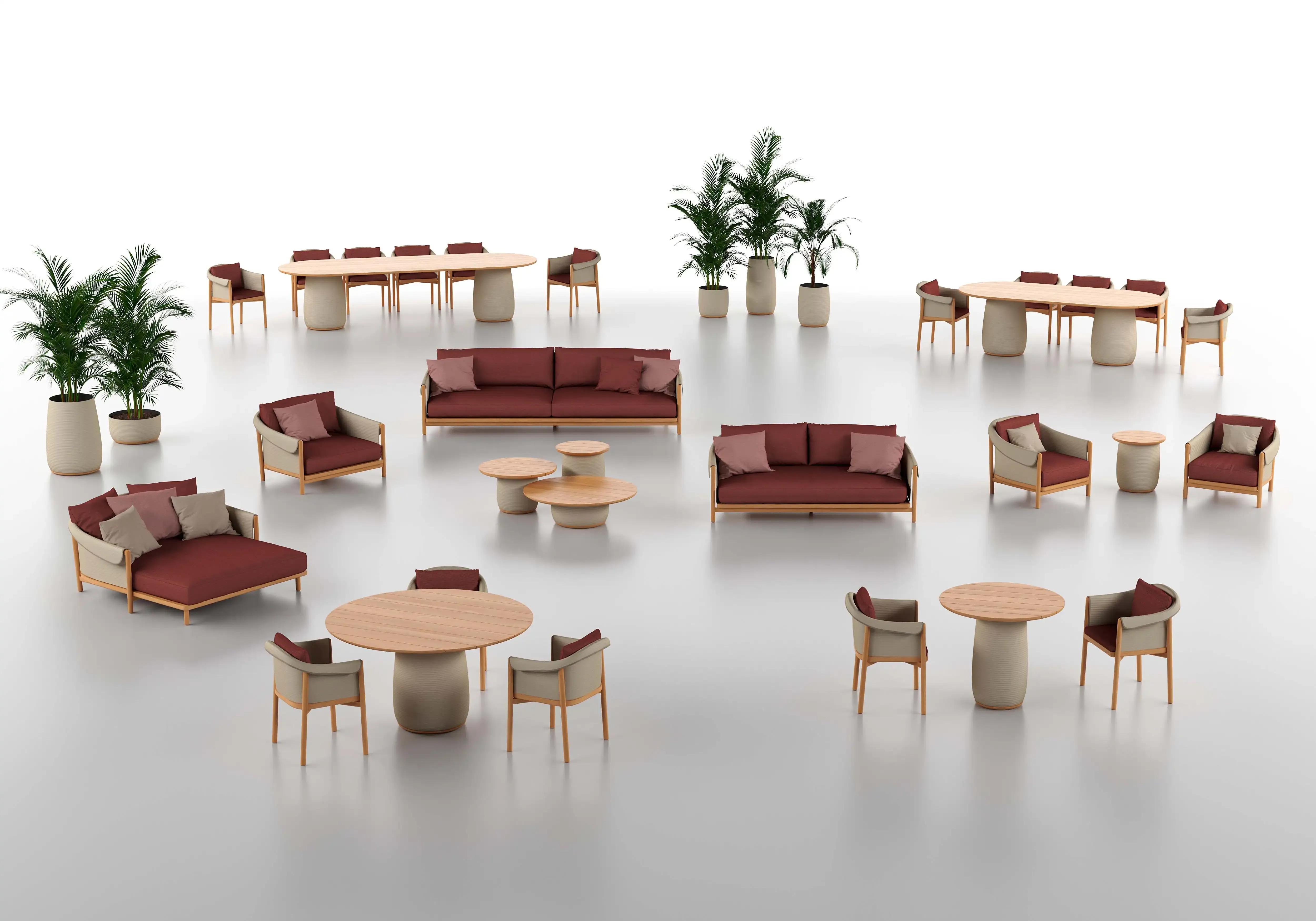 With a refined texture, dynamic patterns, and uniquely structured rope fabric that interacts with its surroundings, Grao seamlessly integrates into any setting. Whether in a tropical garden, an urban rooftop, or a beachfront villa terrace, Grao brings an elegant and natural touch to every space.