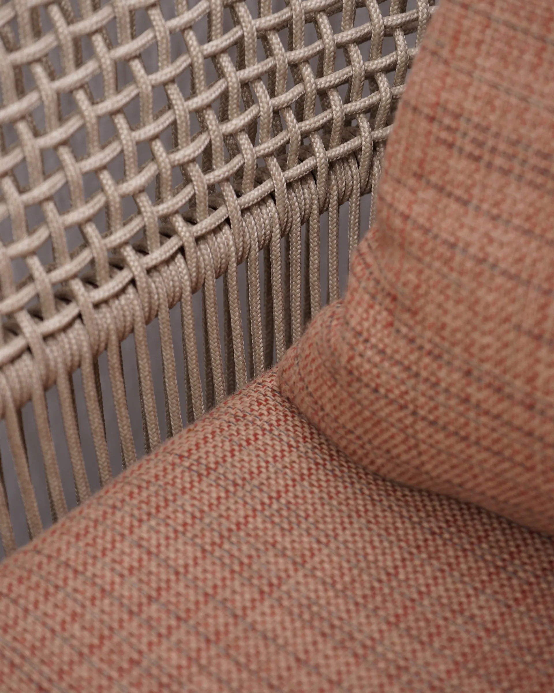 This collection celebrates purity in materials. It highlights the natural elegance of teak combined with the sleek, technical allure of aluminum. Each element is gracefully united by rope, symbolizing both connection and comfort, and bringing the circle of this lightweight, refined collection to a harmonious close.