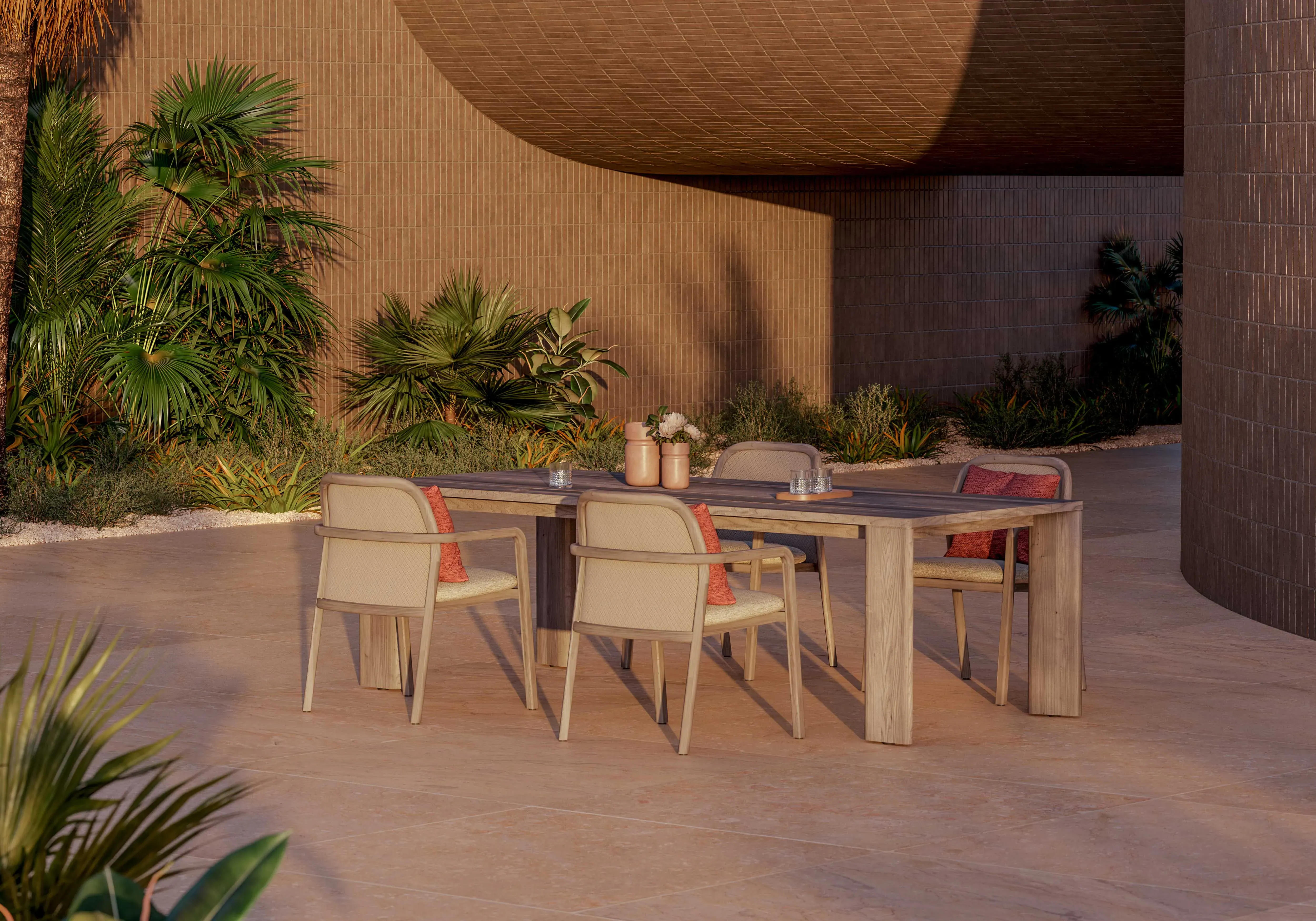 Rooted in a design philosophy of balance, Lena seamlessly combines two defining elements—woven-patterned textiles rich in texture and inviting curved forms. More than just a visual statement, these details enhance both aesthetics and the comfort of every seating experience.