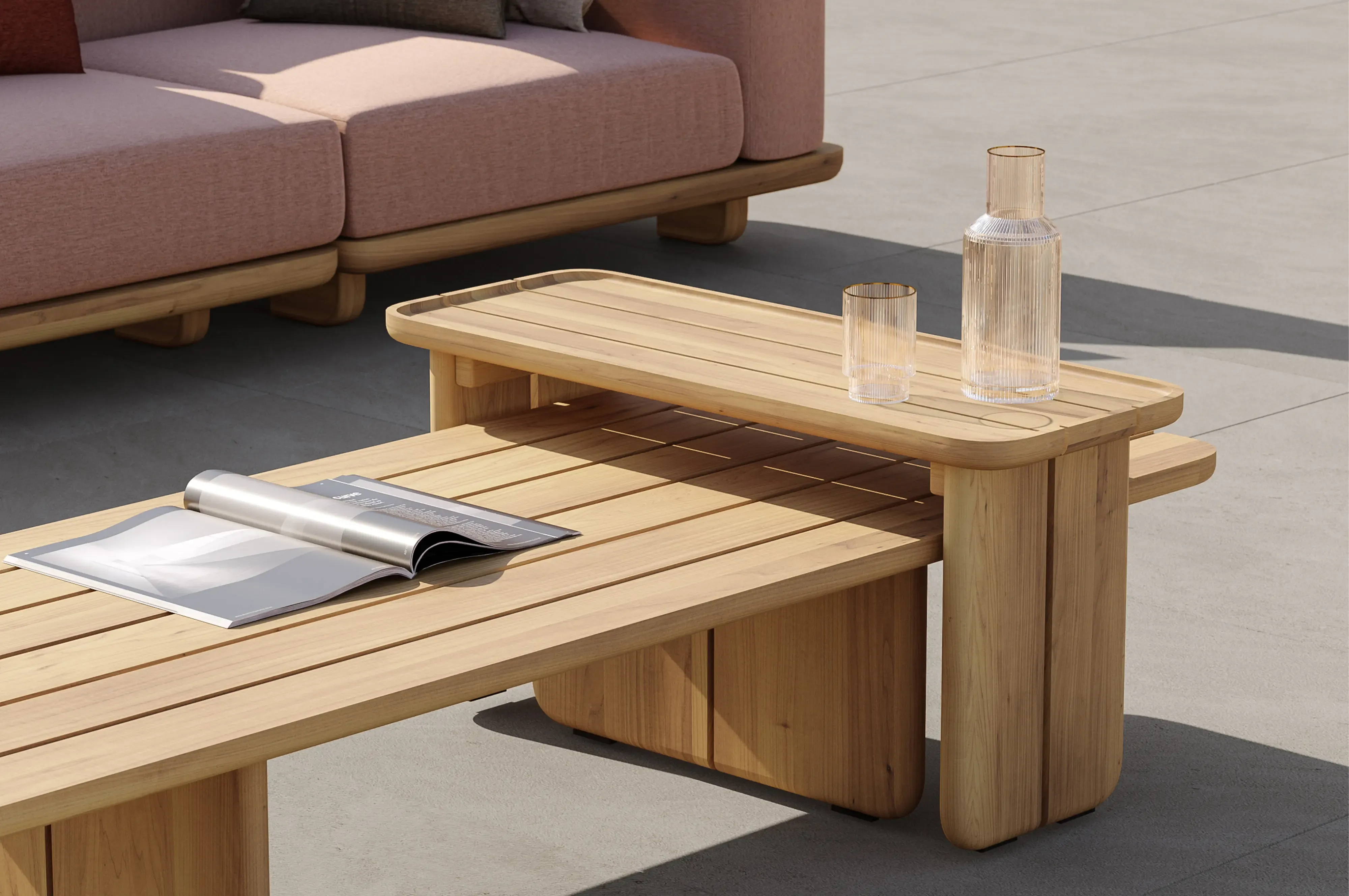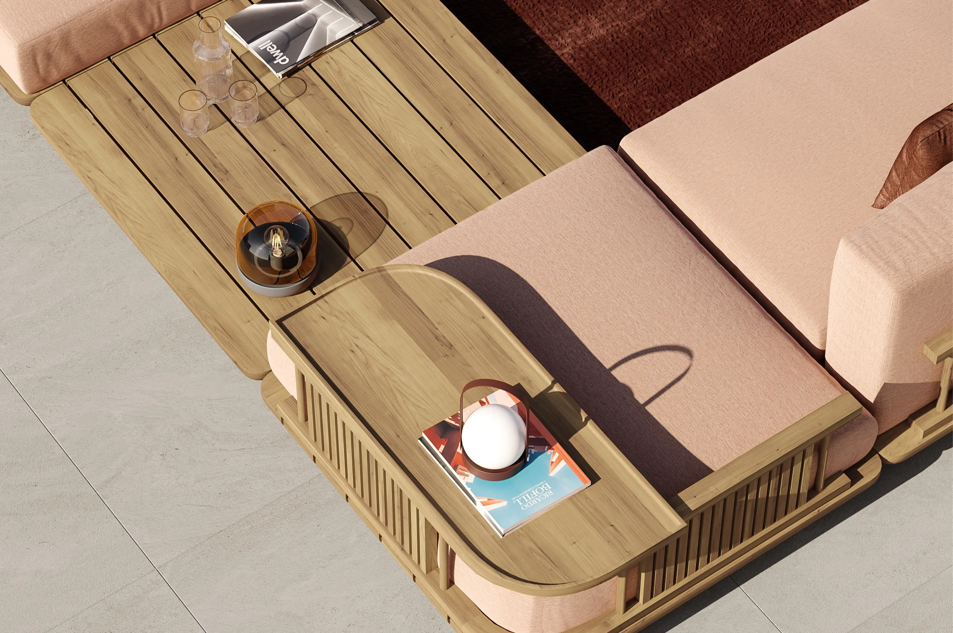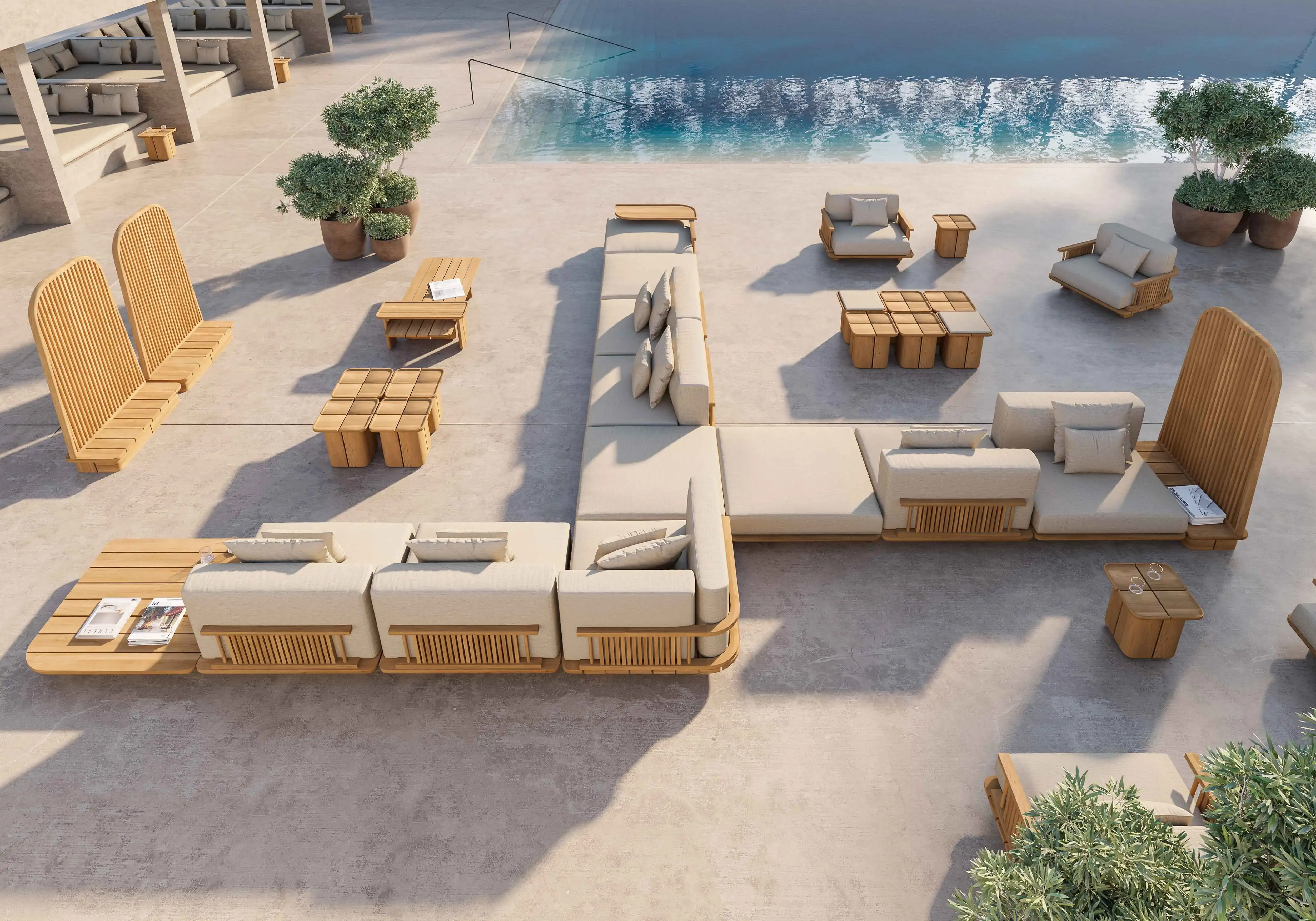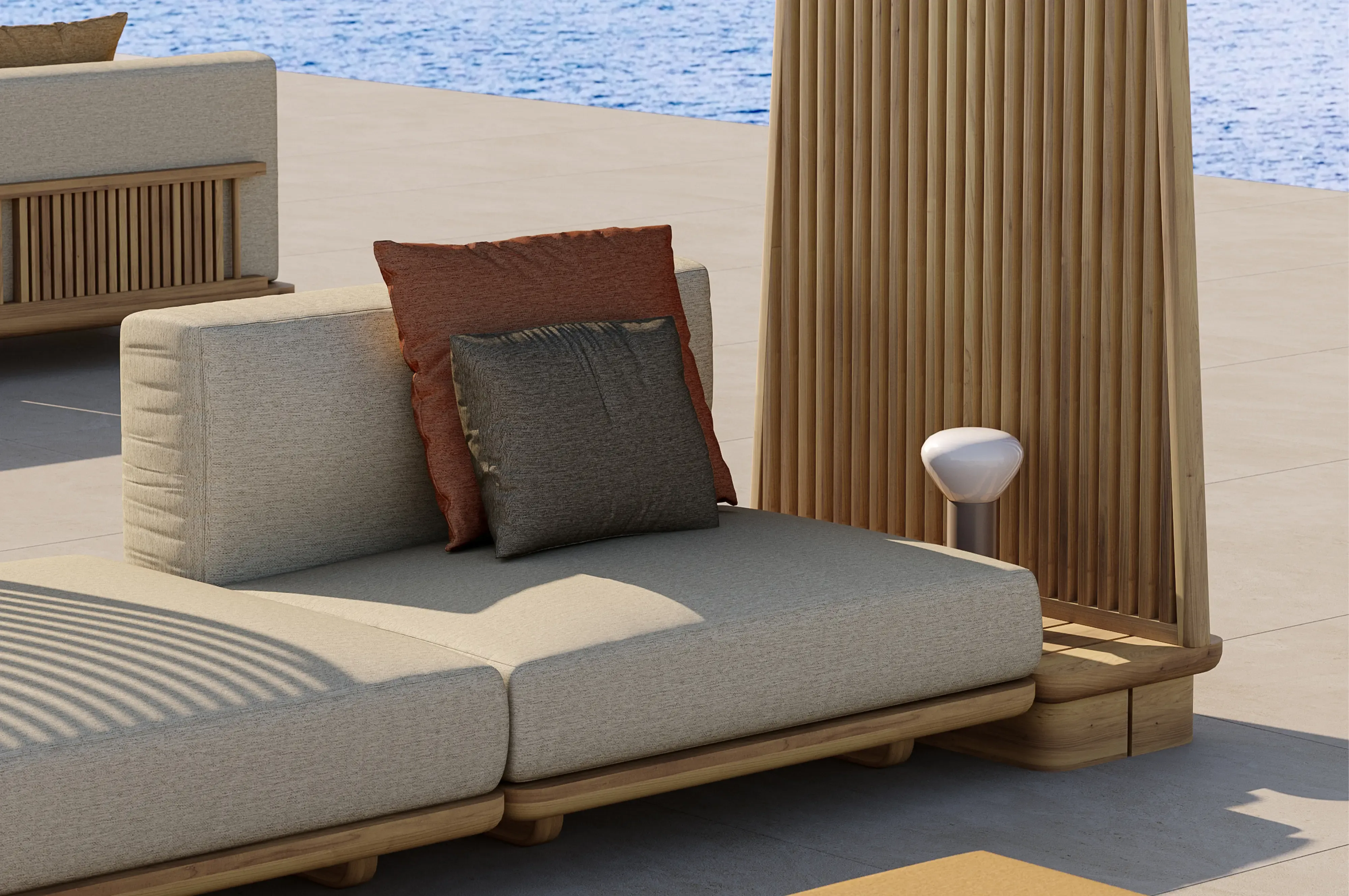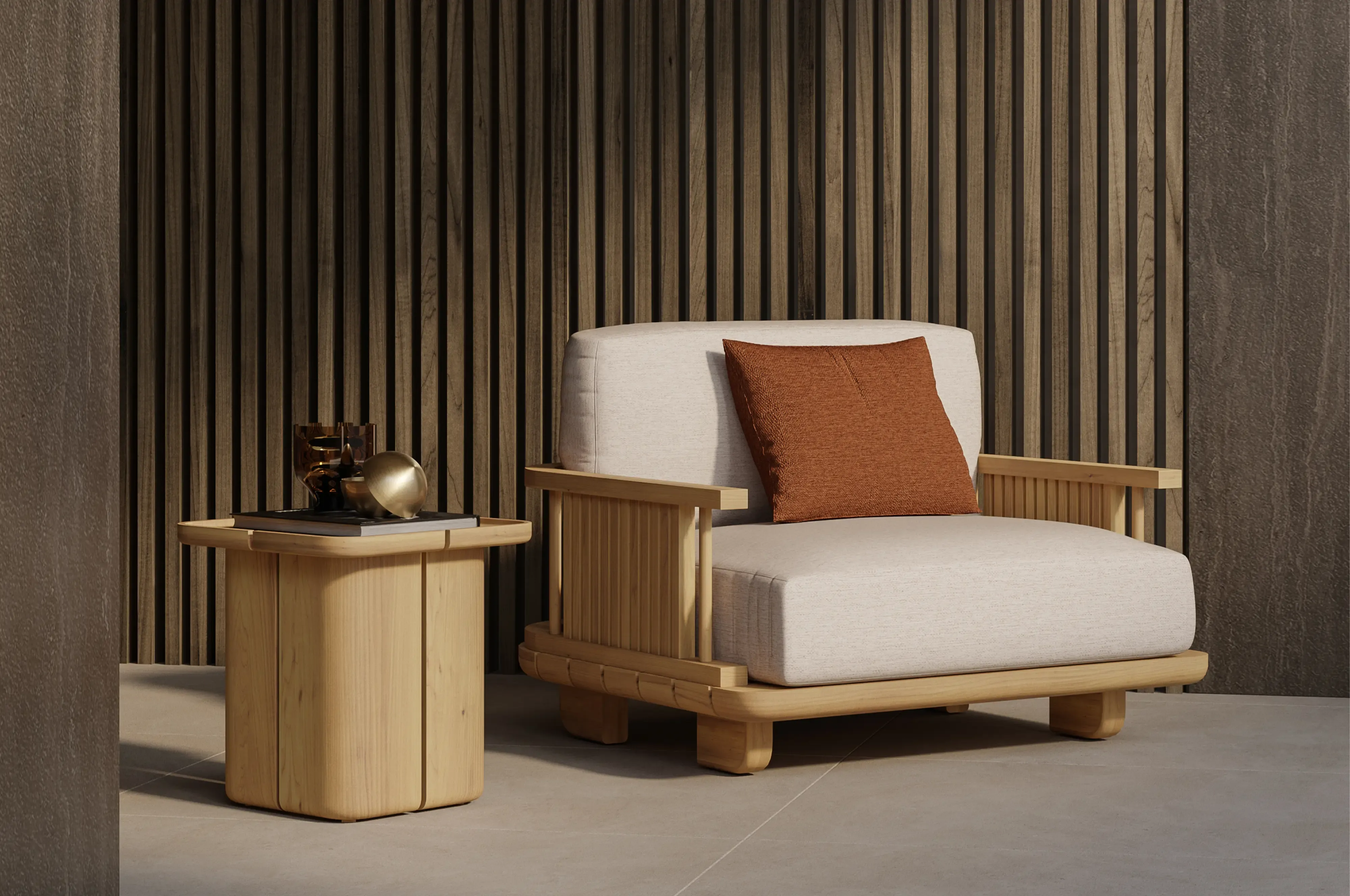 The Creta Collection merges Eastern heritage with contemporary aesthetics, creating a refined outdoor experience. Its vertical slat detailing and solid teak construction offer a perfect blend of warmth and structure, ensuring durability and sophistication.