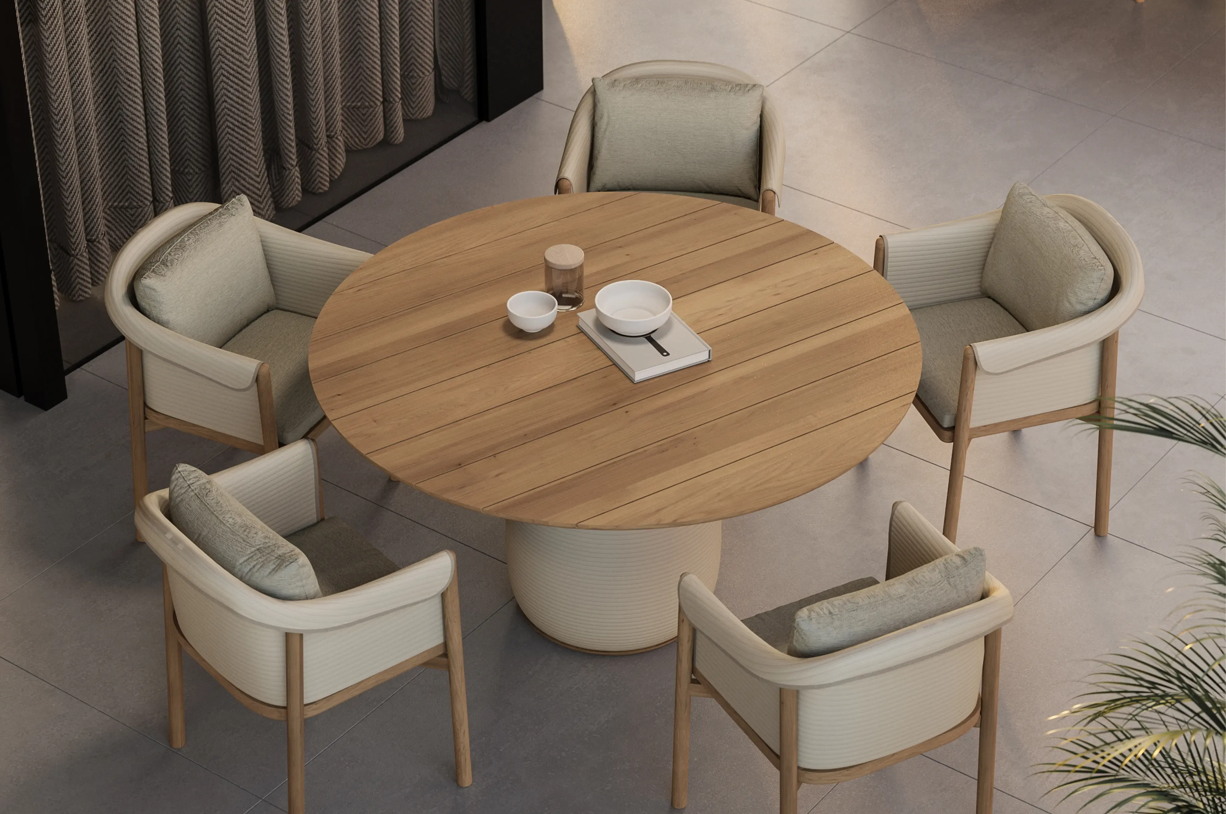 With a refined texture, dynamic patterns, and uniquely structured rope fabric that interacts with its surroundings, Grao seamlessly integrates into any setting. Whether in a tropical garden, an urban rooftop, or a beachfront villa terrace, Grao brings an elegant and natural touch to every space.