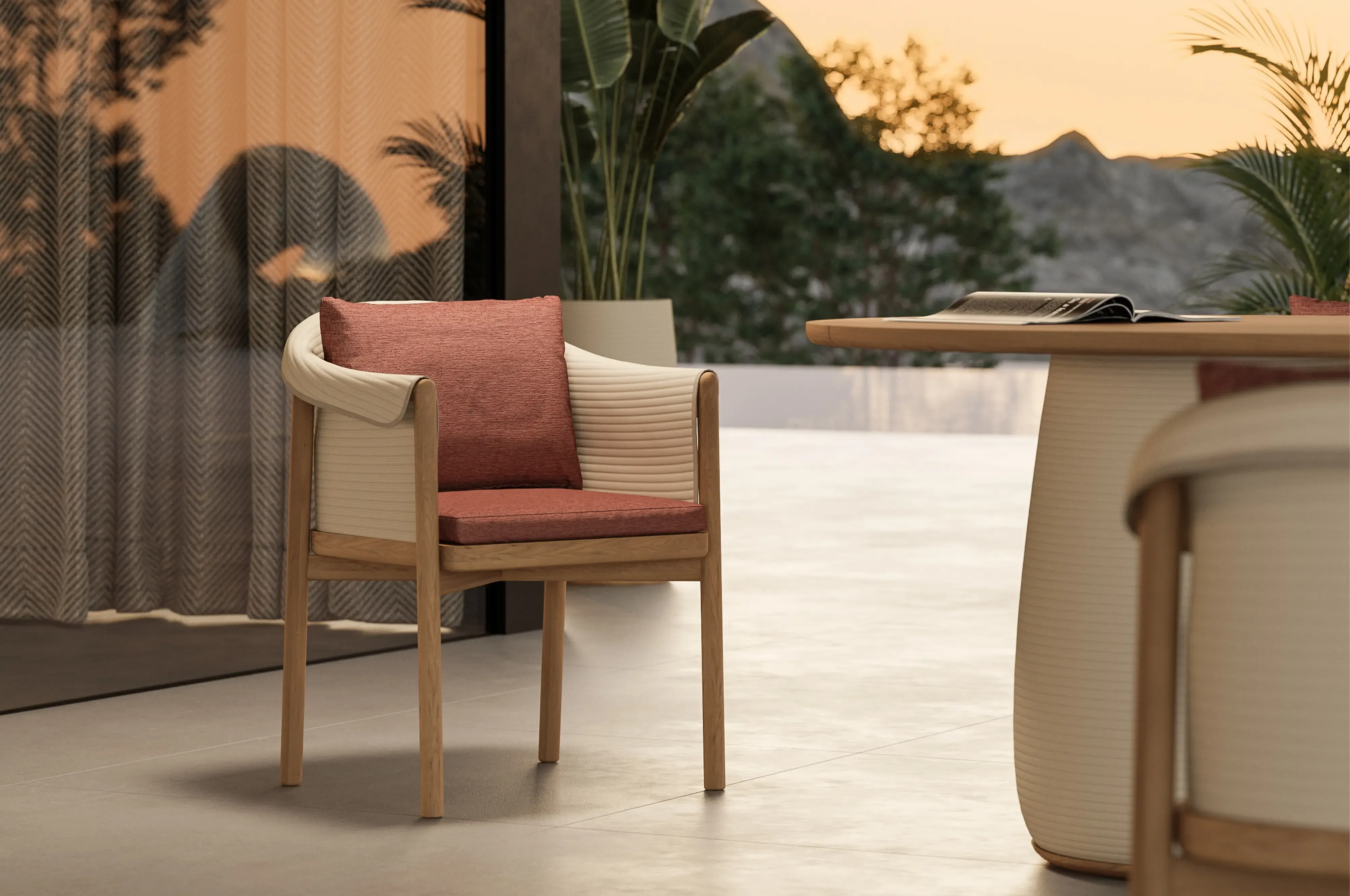 Grao Collection is a manifestation of how the Mediterranean and Asian influences come together in harmonious design. This collection reflects a seamless blend of cultures. Like a universal language that connects traditions, the use of rope in Grao allows its design to adapt effortlessly to various outdoor spaces.